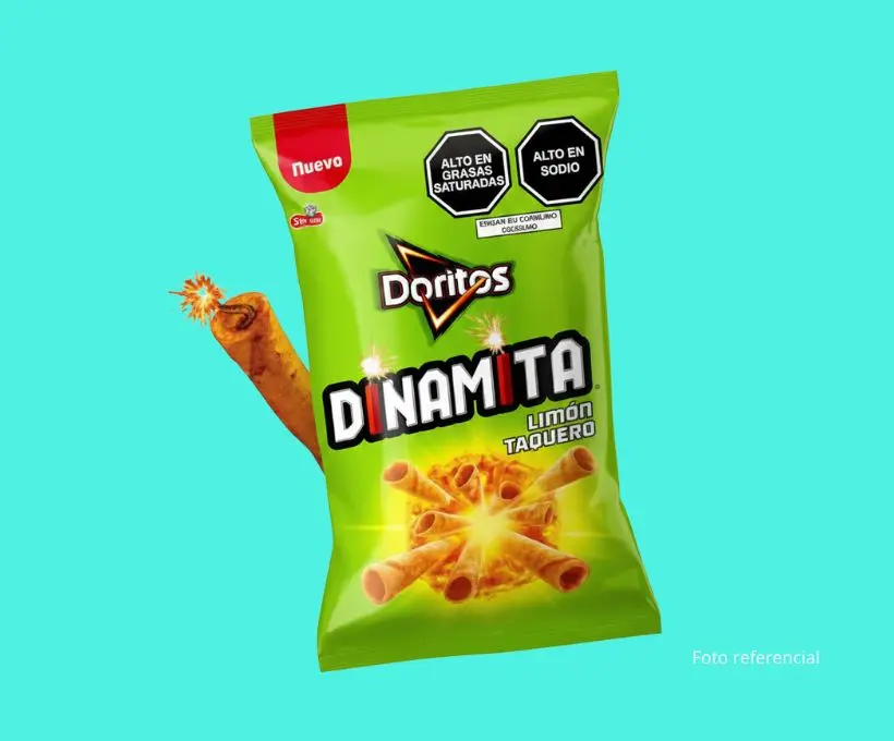 Doritos Dinamita LT en presentación de 150 g. Snack crujiente con sabor picante intenso, ideal para compartir o disfrutar en cualquier momento del día.