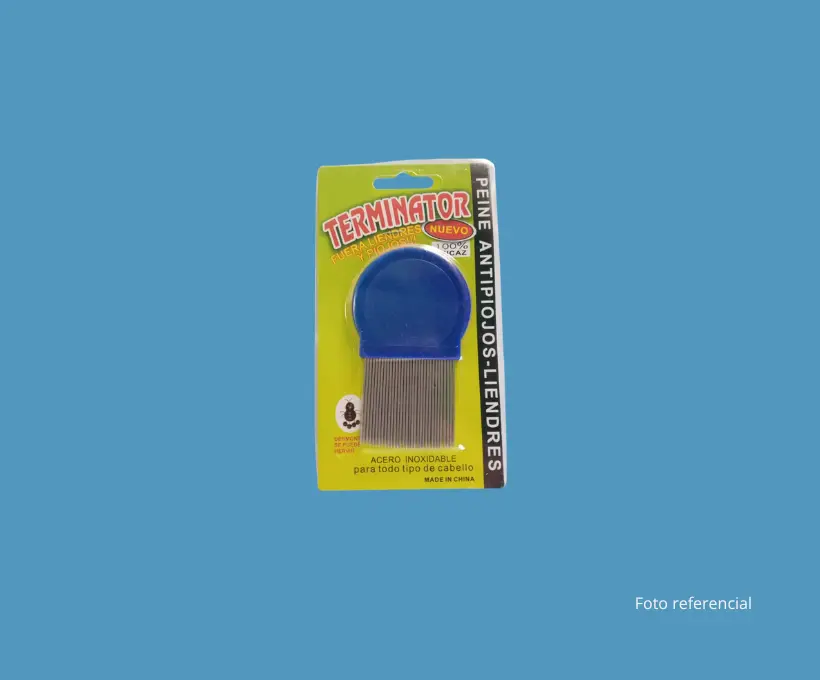 Peine metálico de dientes finos, ideal para eliminar piojos y liendres de forma eficaz y segura.